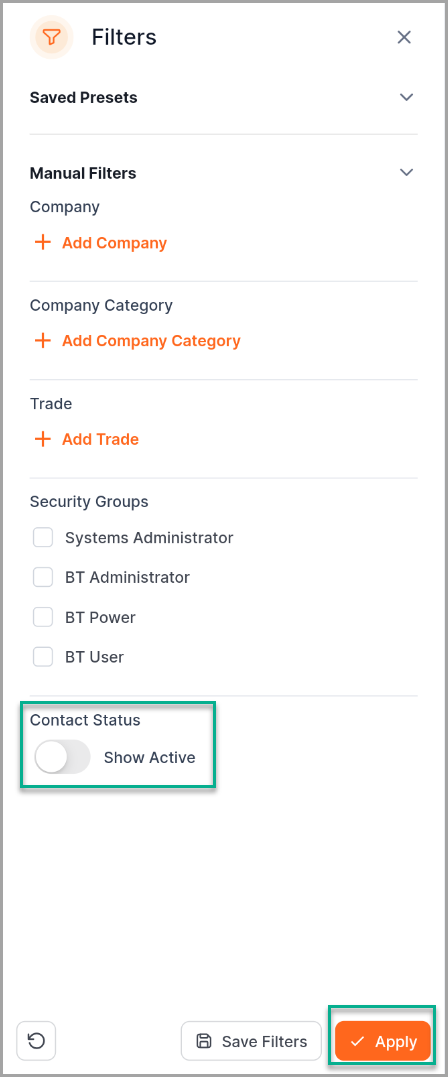Contacts function allows you to view, edit, deactivate and re-activate contacts from your Company.