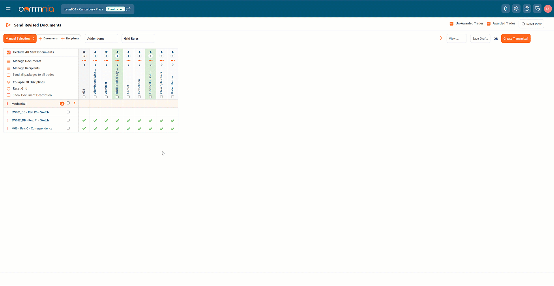 Once you have assigned all relevant documents to each trade/user group, you can save it as draft or click on the Create Transmittal icon to prepare your transmittals.