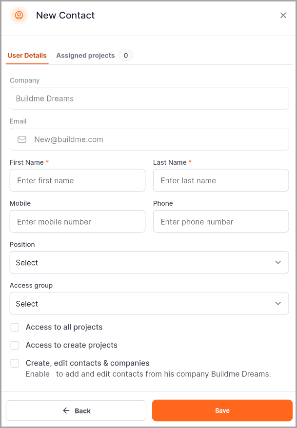 - To assign the user to a project, select the project under the Assigned Projects tab.