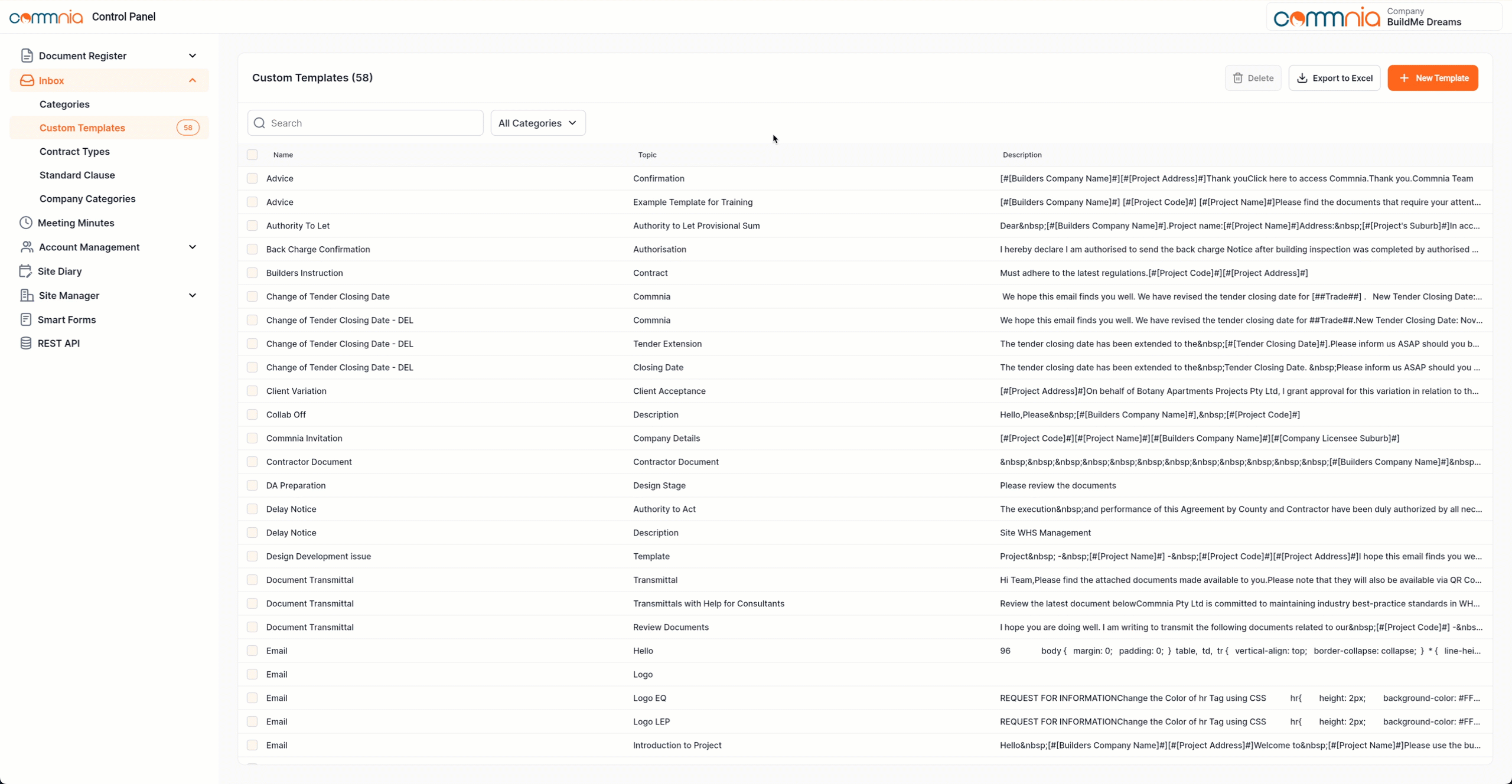 Commnia lets you create custom templates for your description in emails saving you time writing generic or standard messages.