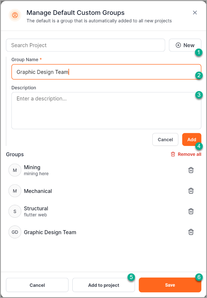 Default Groups is a custom group that will be automatically added to all newly created projects.