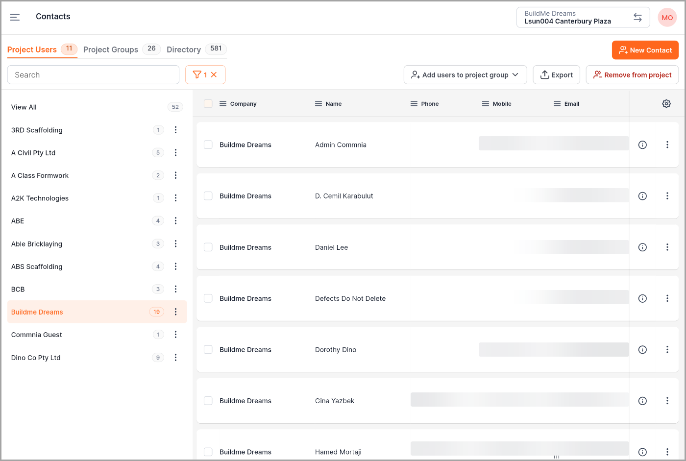Keeping an up-to-date record of all project users is essential for effective communication and coordination. Commnia makes it easy to export your Project Contact List, allowing you to download all user details in an Excel file for quick reference or reporting.