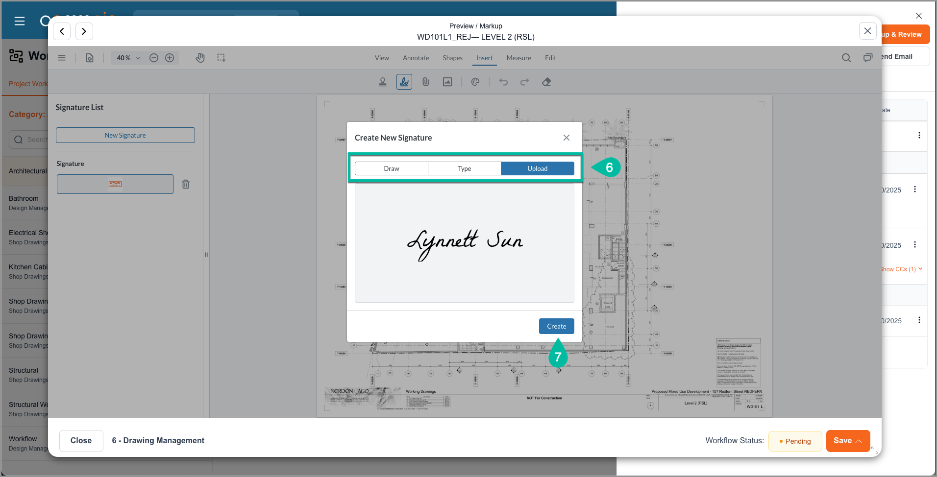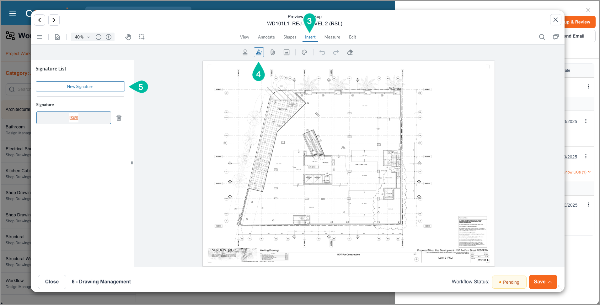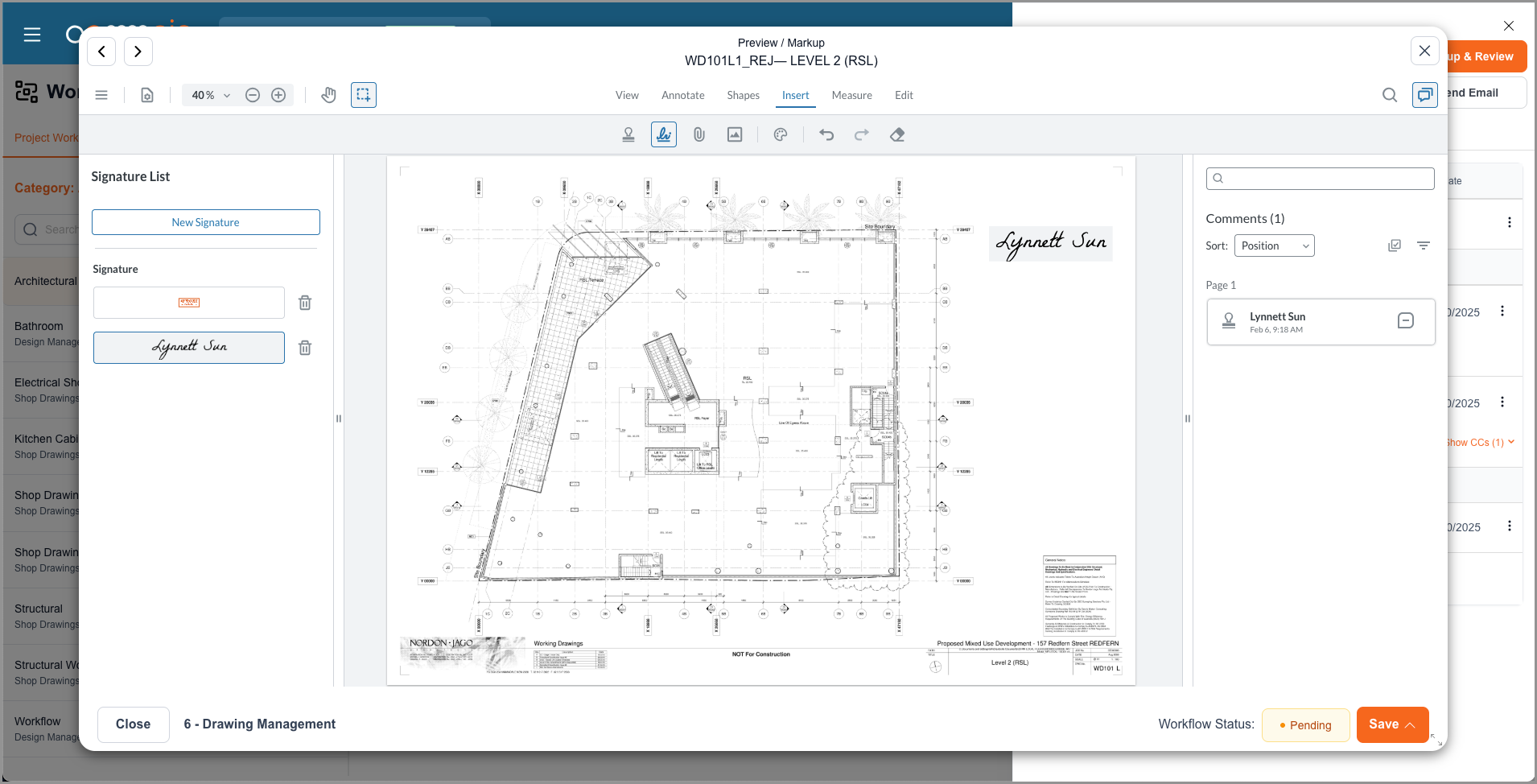 Commnia’s Document Approval Workflow allows reviewers and approvers to apply signatures directly during the markup process. This ensures approvals are clearly recorded, auditable, and embedded within the document itself.