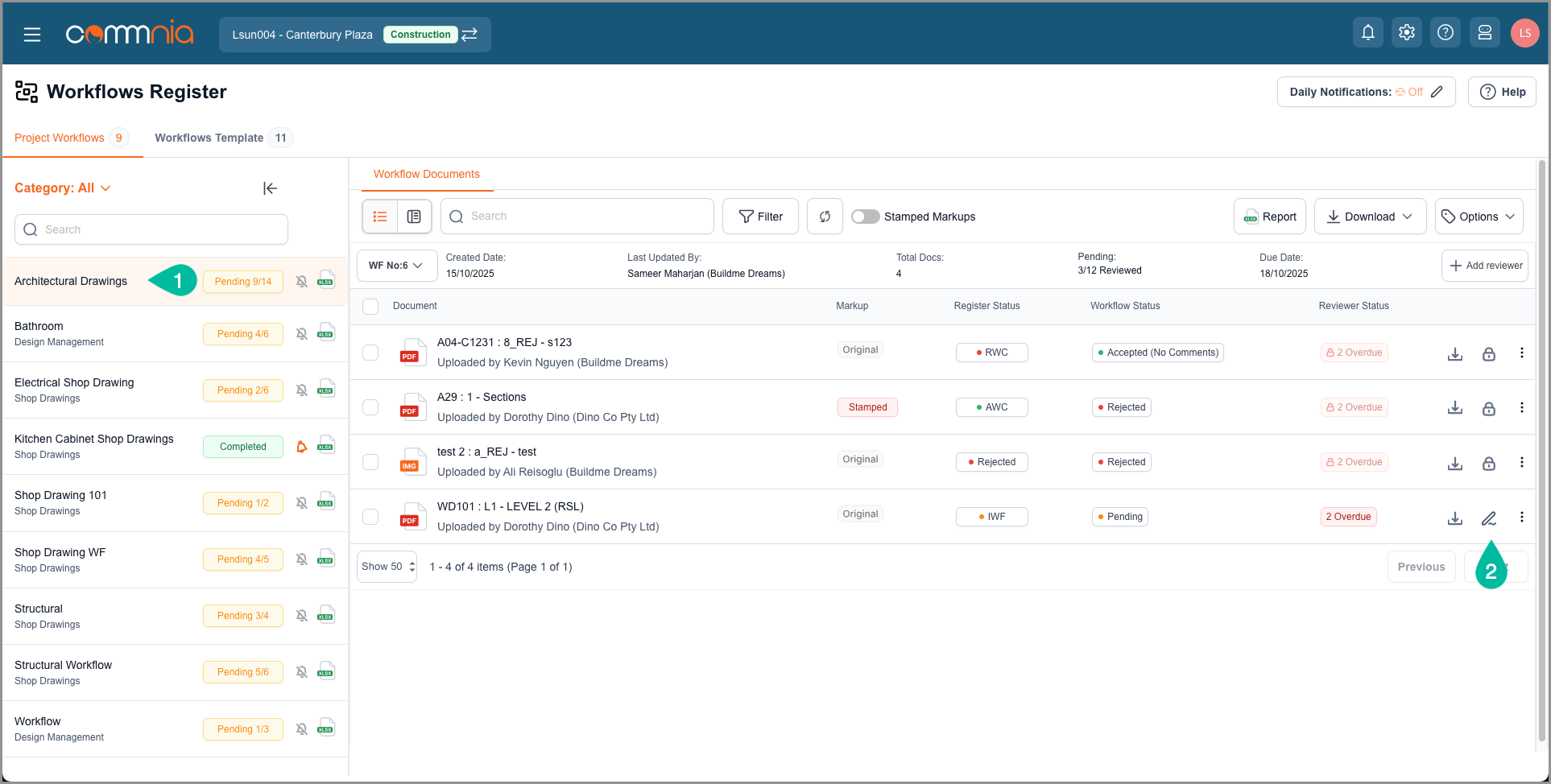 The Workflow Process The document workflow ensures every file uploaded to the Document Register is properly reviewed and approved. Once a document is uploaded, an Initiator starts the process using a predefined Workflow Template. Assigned Reviewers ...
