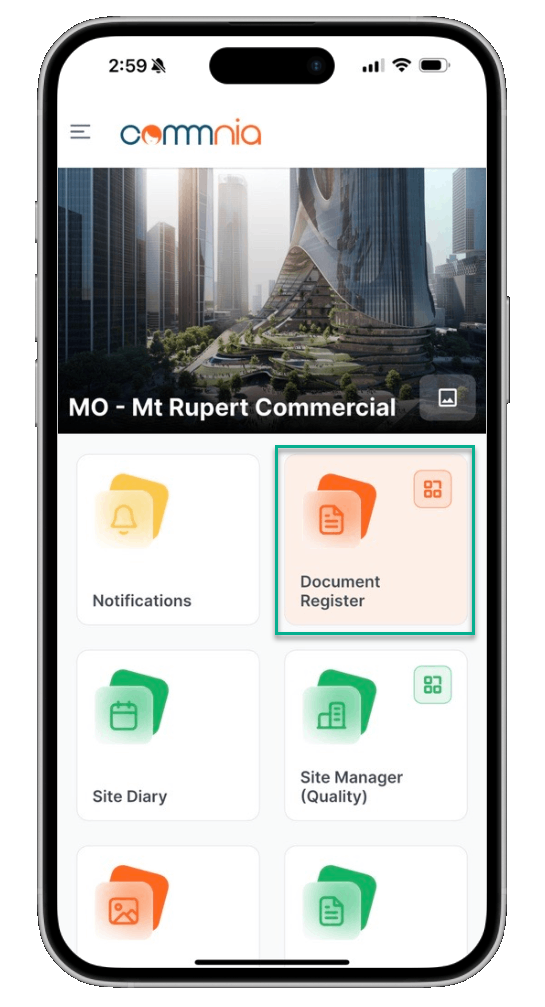 1. Accessing the document register To access the document register, you must first select a project and navigate to the home screen. Additional details located here. You can either search or manually scroll to select a project. Once you have selected ...