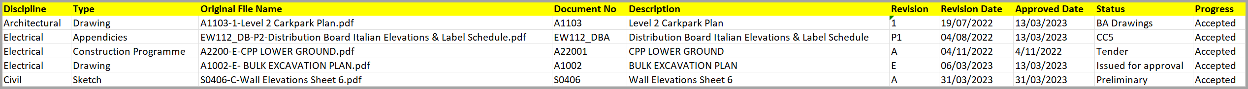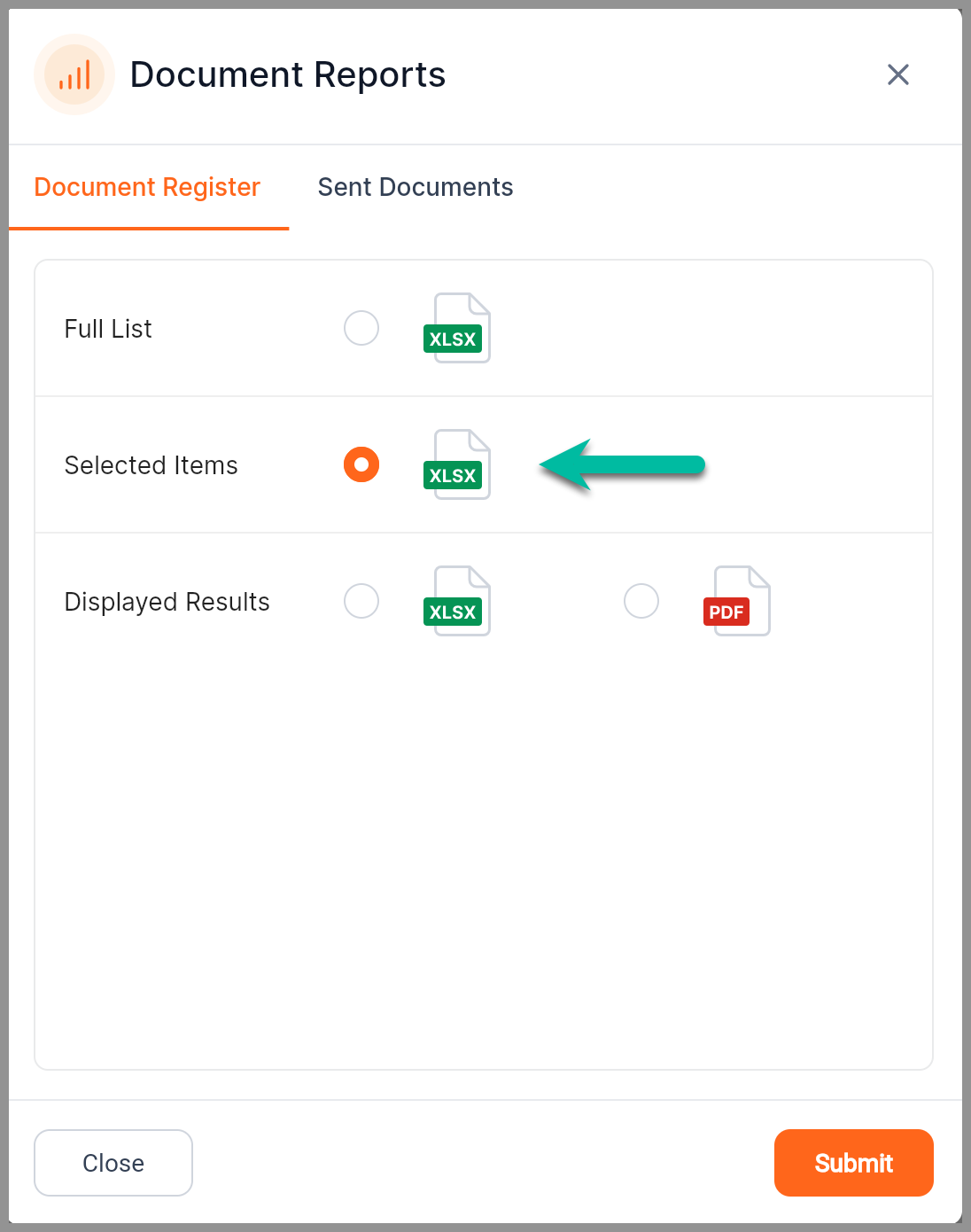 Commnia's Document Register allows you to select multiple documents and export them into Excel.