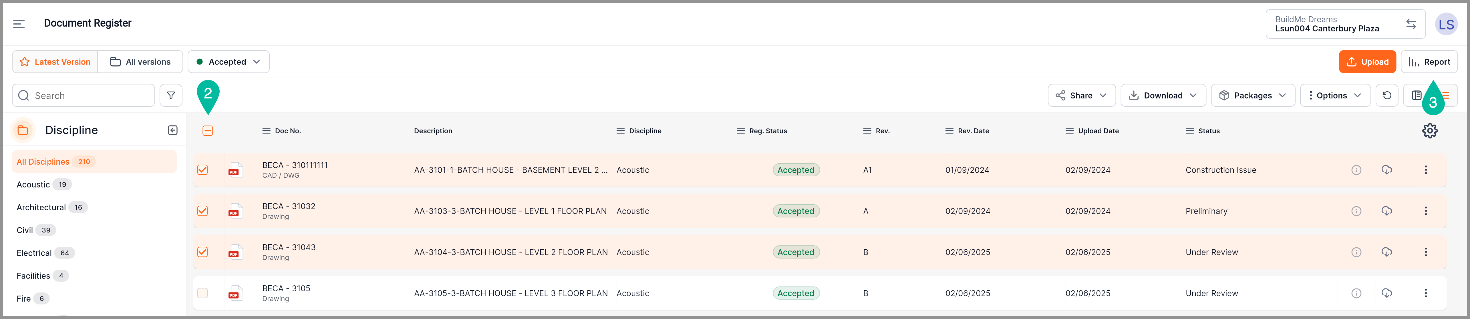- You can use the Document Register Filter or Search bar to help you find the files you need quickly.