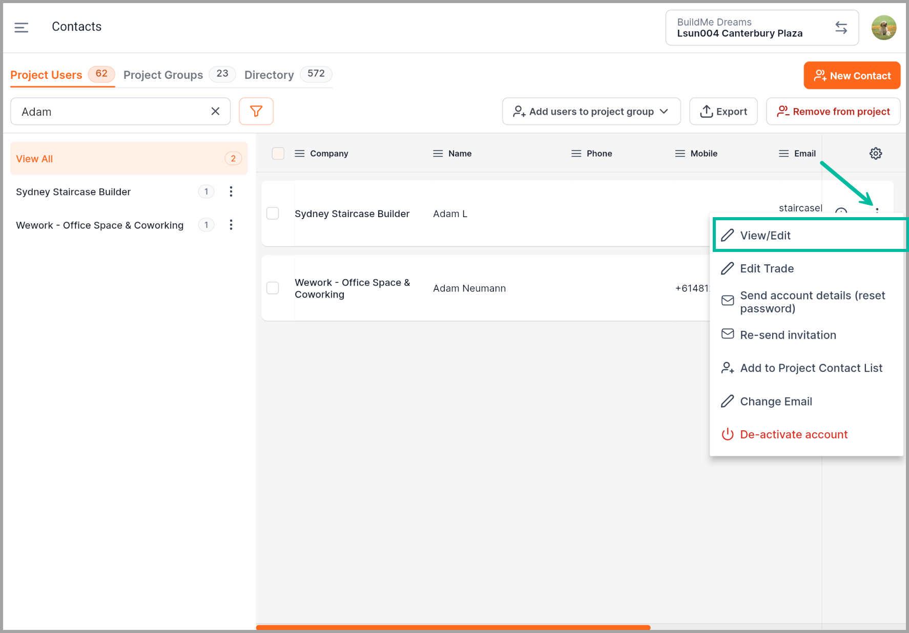 Once the user is found, navigate to the ellipsis "..." on the far right and click View/Edit.