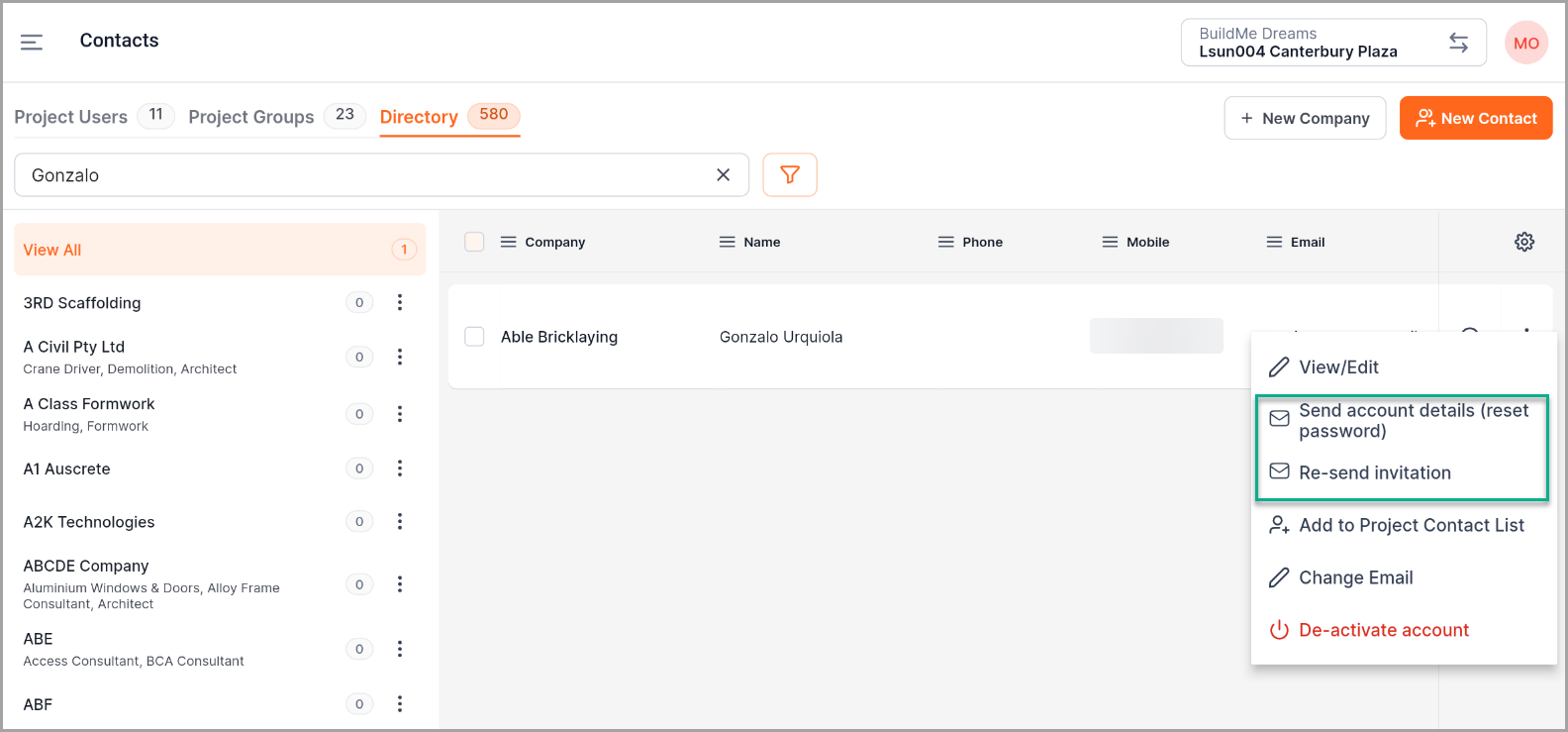 Contacts function allows you to view, edit, deactivate and re-activate contacts from your Company. 1. Navigate to Contacts Select Contacts on the Home Screen. 2. Activate a User Account Your current Contacts are displayed. To access deactivated ...