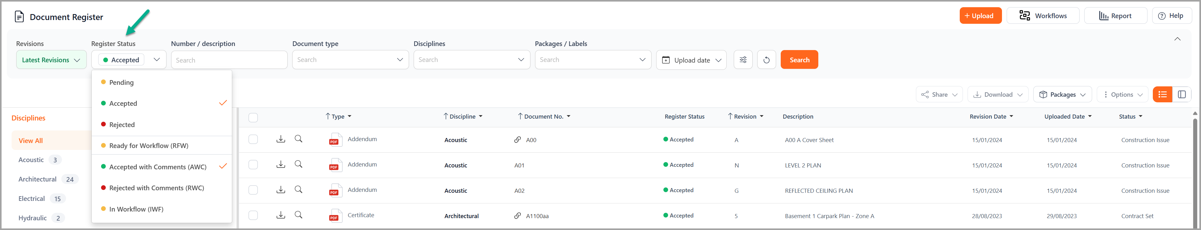 If you're visiting the Document Register and notice not all your documents are showing, it's probably because they have not been accepted for the Register. When documents are uploaded by external parties, for example, a Consultant or Subcontractor, ...