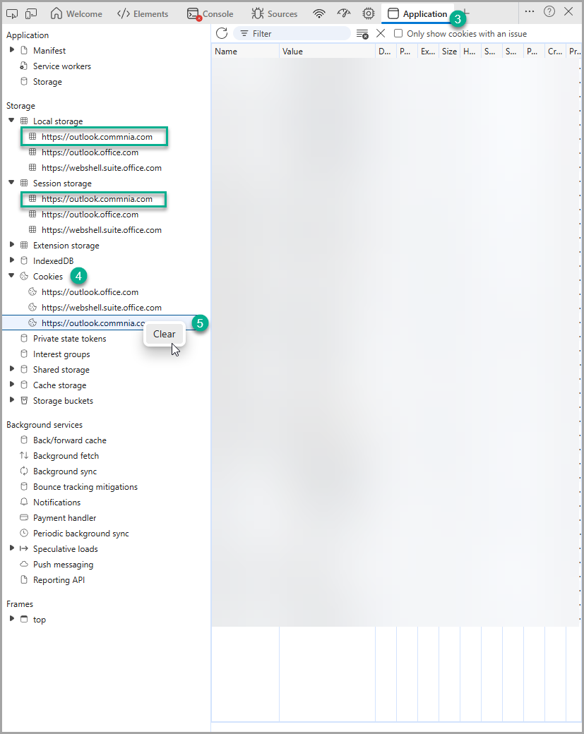 4. Go to Cookies menu on the left, expand it and clear all contents.