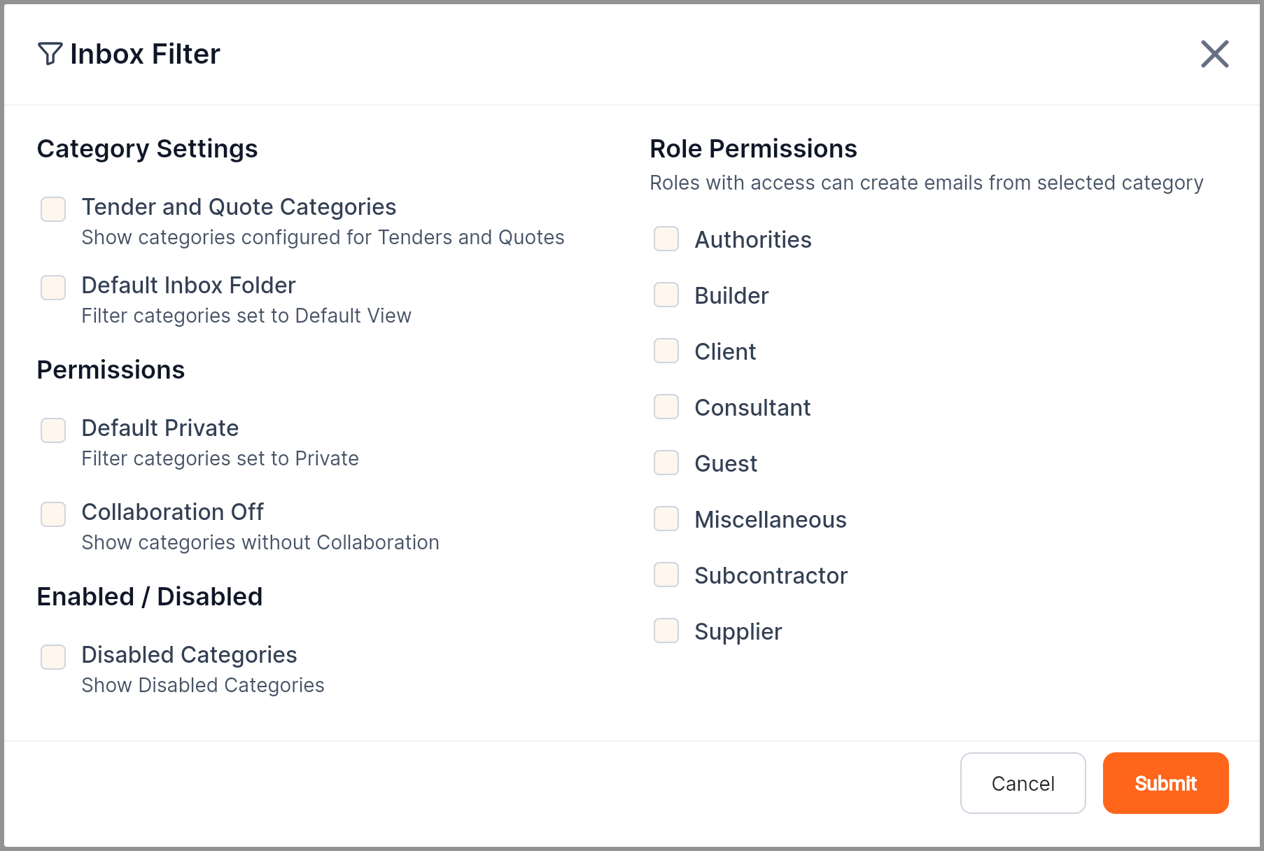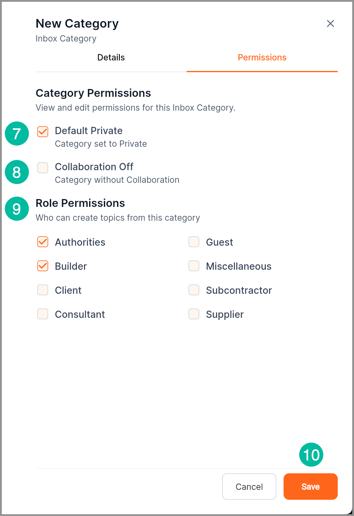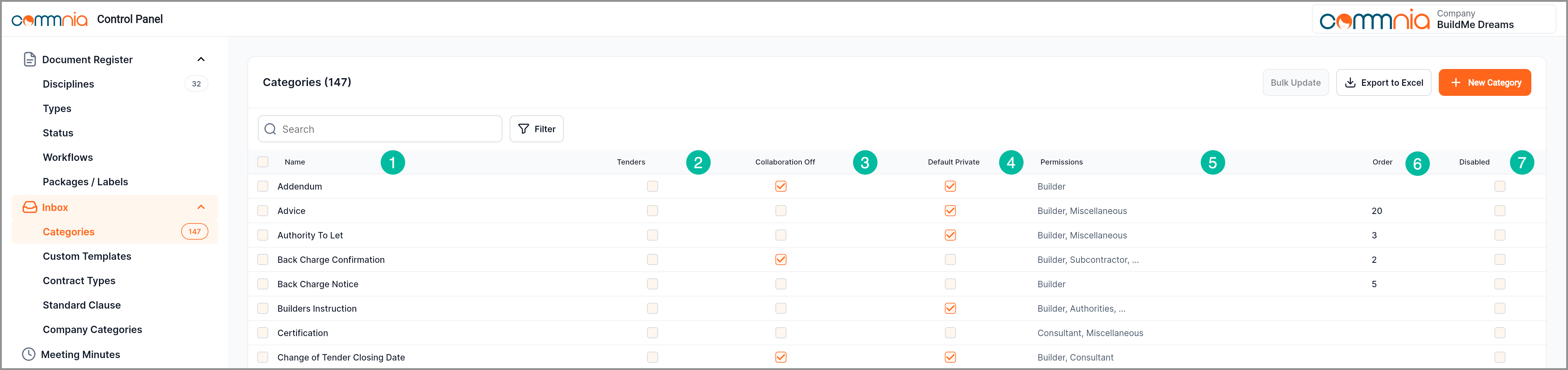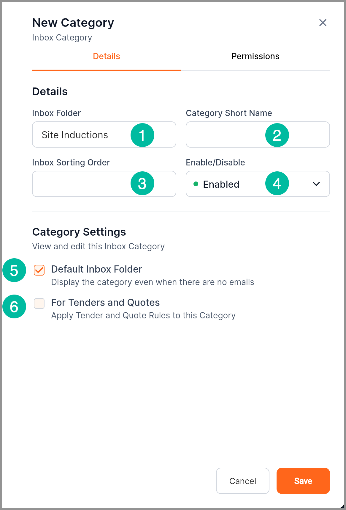 3. Inbox Sorting Order – this will allow you to prioritise your categories when displayed in the Inbox. eg If you wanted Request For Information to display as the first Inbox Category, enter a 1 in this field.