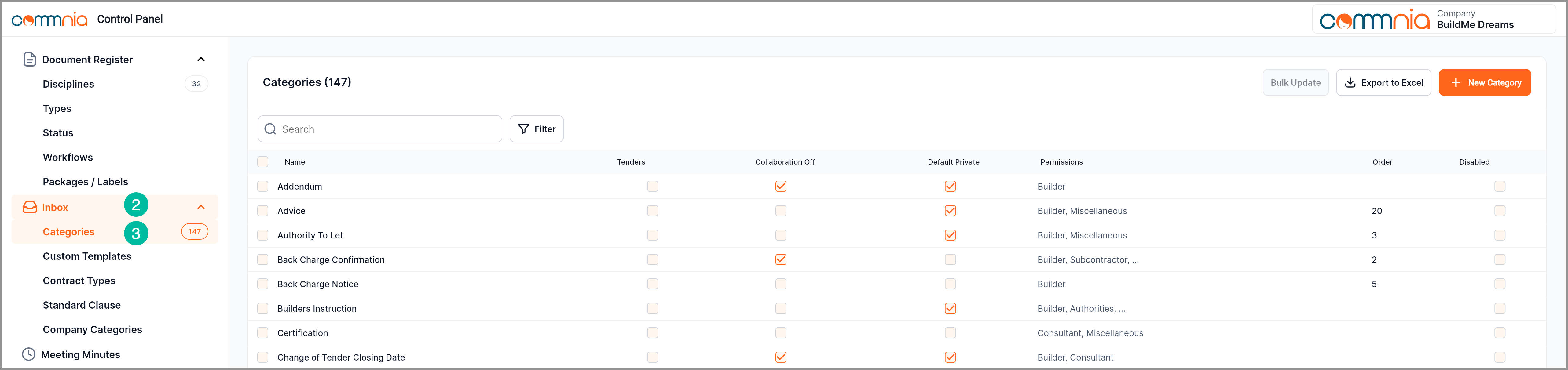 The Document Categories Configuration is where you create and manage the document categories in Inbox. This feature empowers you to define and customise document categories according to your specific requirements.
