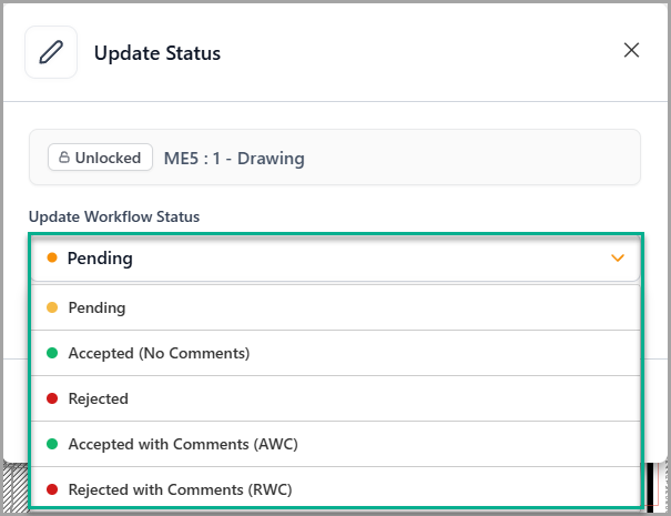 Click on Update Workflow Status at the pop up select from the multiple options: