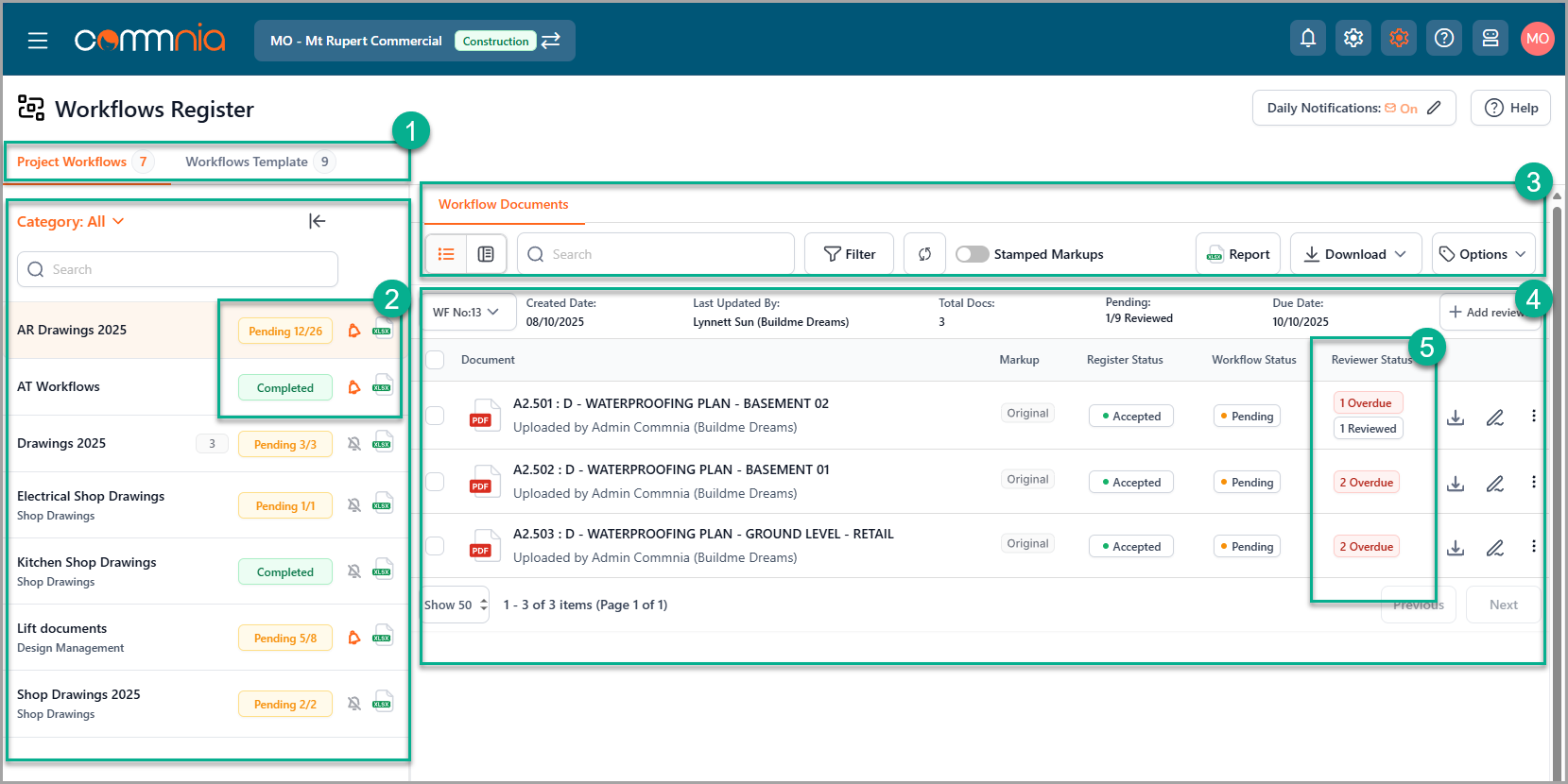 As the Workflow Owner, you oversee the entire review process from start to finish. Once reviewers have provided their feedback and updated their status, you assess all comments and determine the final outcome. You have the authority to approve the document, request revisions, or return it for further review. When satisfied, you update the workflow status and the document register status, finalising the workflow. This ensures the document is officially accepted and the Submitter is notified of the outcome, maintaining full control and accountability throughout the approval process.