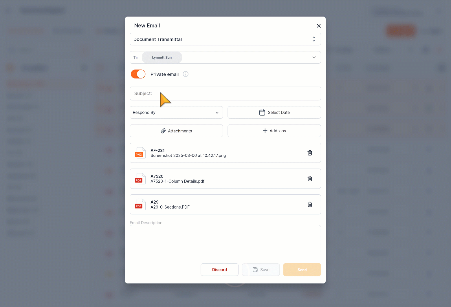 Click on Share, where you can select via Transmittal, RFI, or Email. Alternatively, you can choose a different category on the next screen.