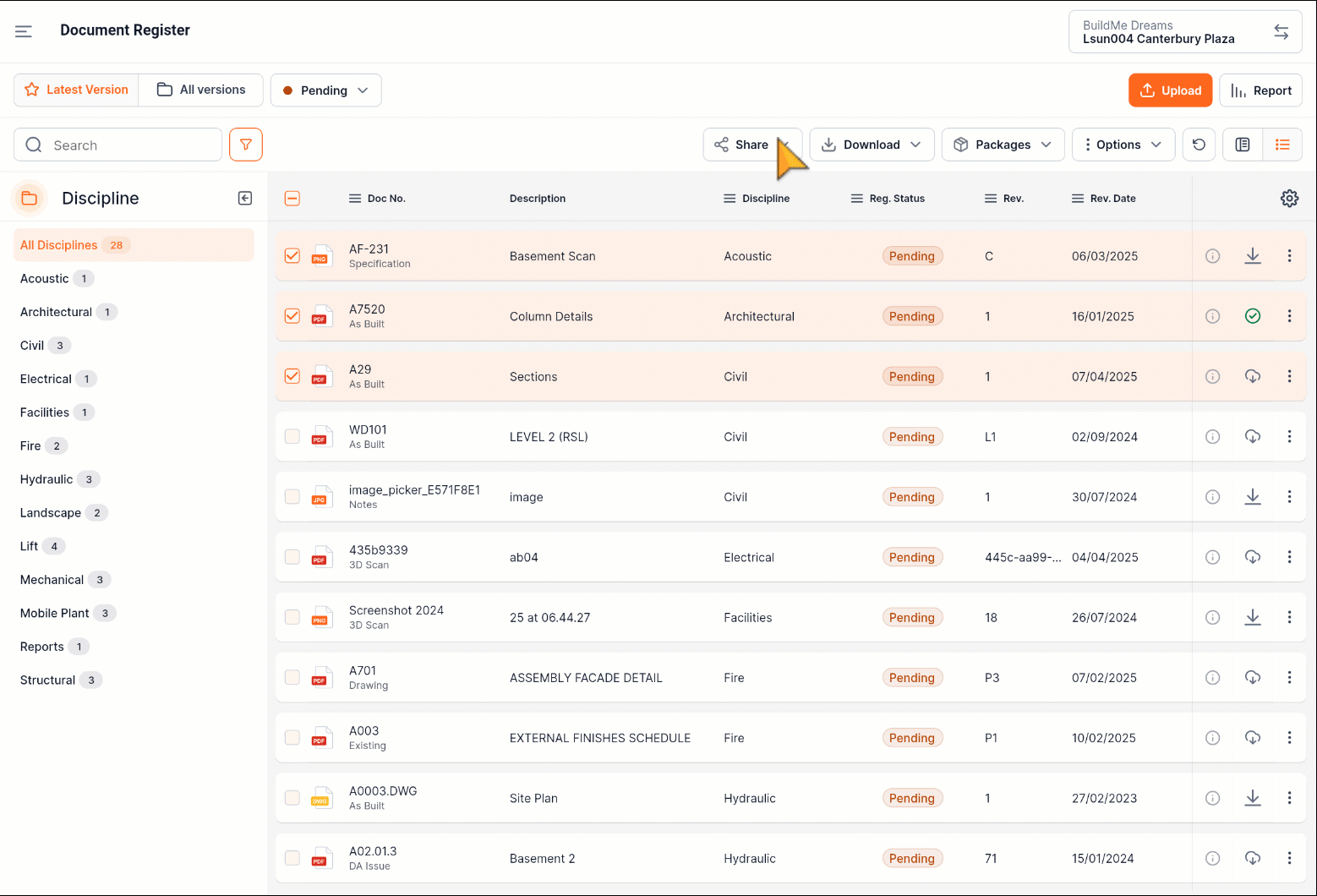 Commnia offers the flexibility to upload files of any size, including various formats such as PDF, DWG, CAD, MS Excel spreadsheets, MS Word, photos etc. Uploading documents to the register is a straightforward process: users simply need to select ...